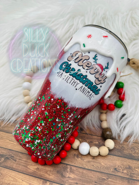 Please take a look at all of the tumblers I have made and probably sold. Customization can be made in anyway you would like. From the glitter color, vinyl, size and shape. Please let me know how I can design a tumbler for you.